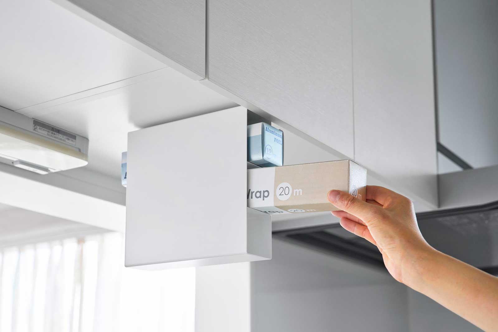 ・取り付け可能な吊り戸棚:棚板の厚さ14-20mm、棚板の幅58mm以上、棚板の奥行き210mm以上、扉と棚板との隙間3mm以上 ※設置場所のサイズや厚さ・形状・材質によっては取り付けできない場合があります。また、ガラス戸へのご使用はお避けください。