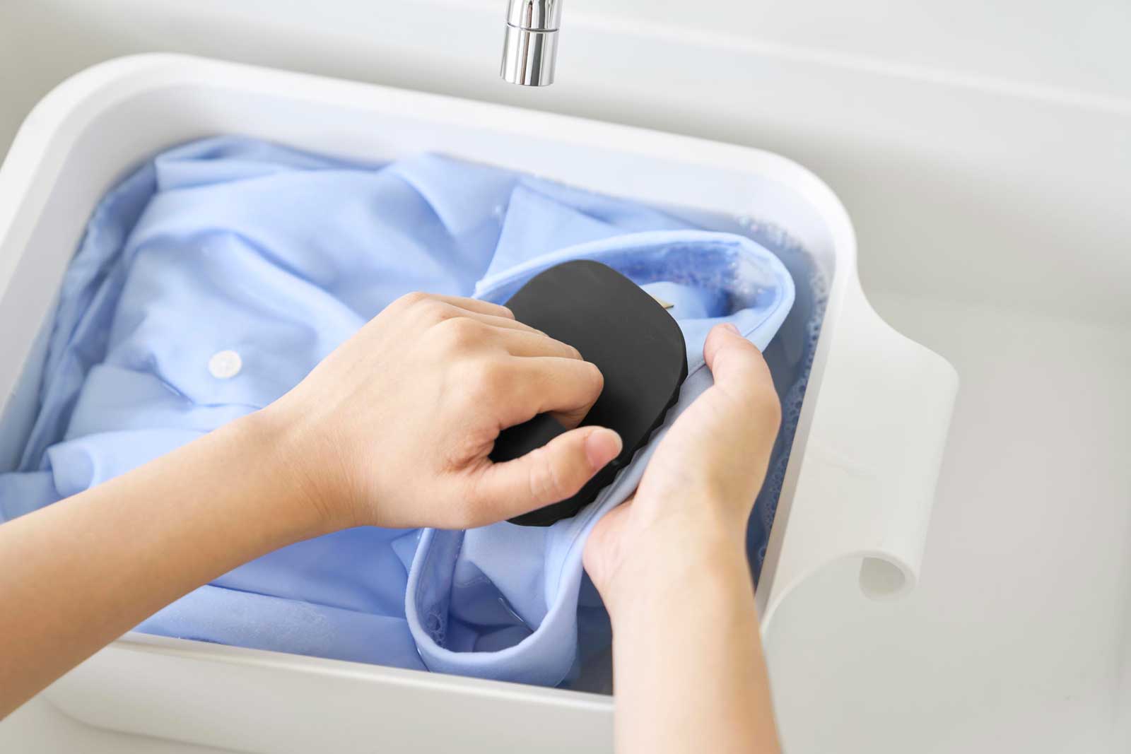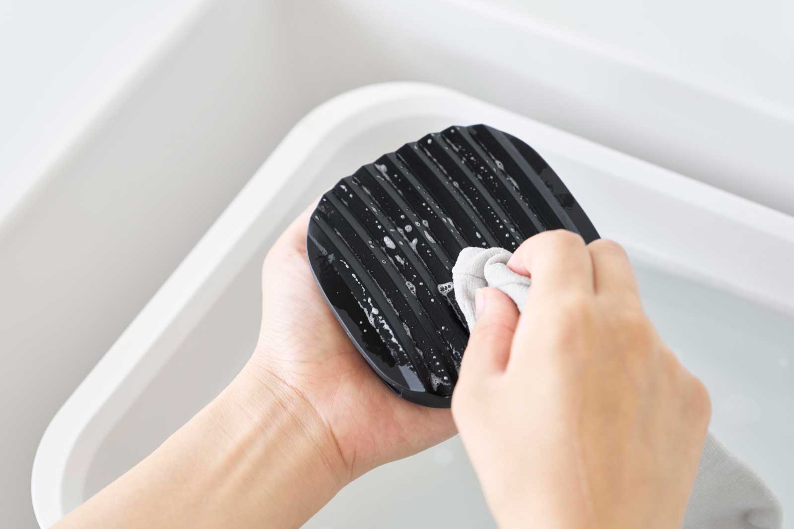 洗濯板のような波状の突起面で、頑固な汚れや食べこぼしなどのシミを擦り洗いできます。手のひらサイズなので細かな汚れも落としやすく、靴下や下着などの小さな衣類の予洗いにも活躍します。