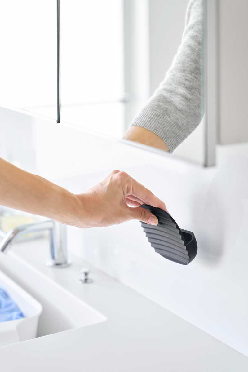 エリや袖口の部分洗いに便利な手のひらサイズの洗濯ミトン。マグネットの付く浴室や洗面台の壁面などに貼り付けて収納でき、必要な時にはサッと手に取れて便利な洗濯ミトンです。