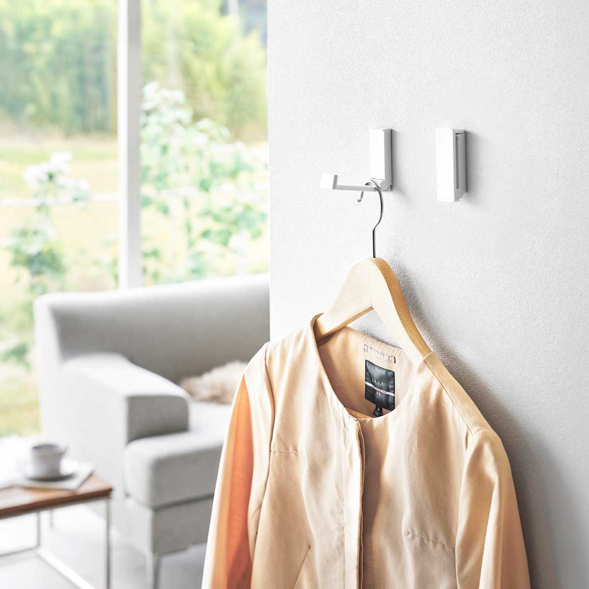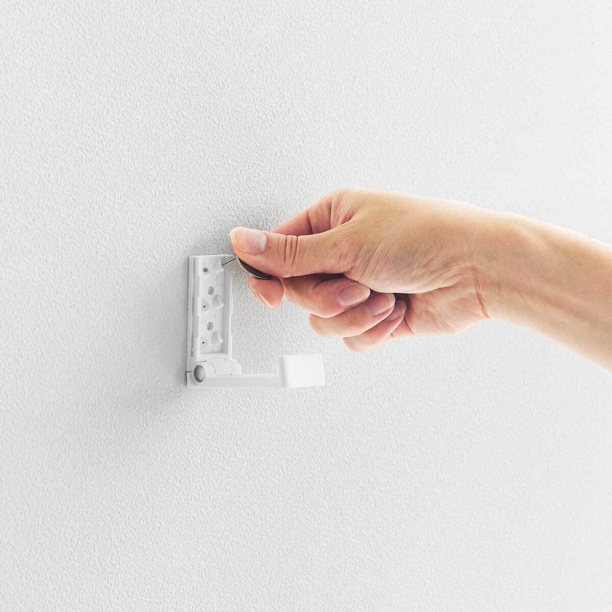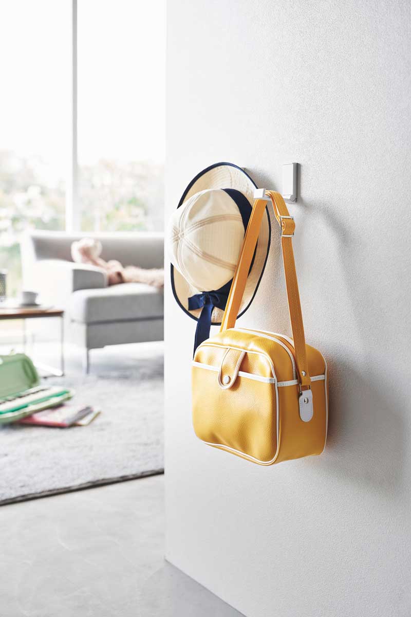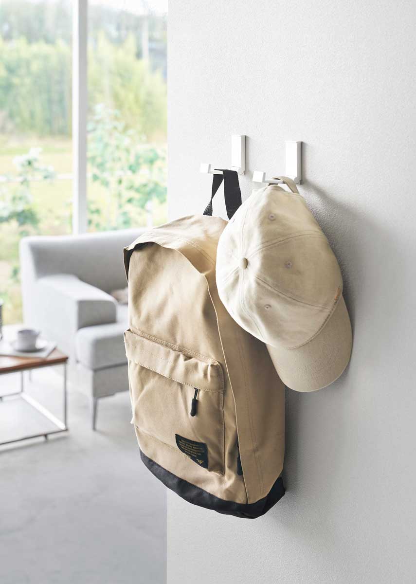 リュックや帽子、コートなどを壁にすっきり収納できます。使わない時はコンパクトに折り畳めます。壁の穴が目立ちにくい石こうボードピンで簡単取り付けられて、木ネジでも取り付け可能です。