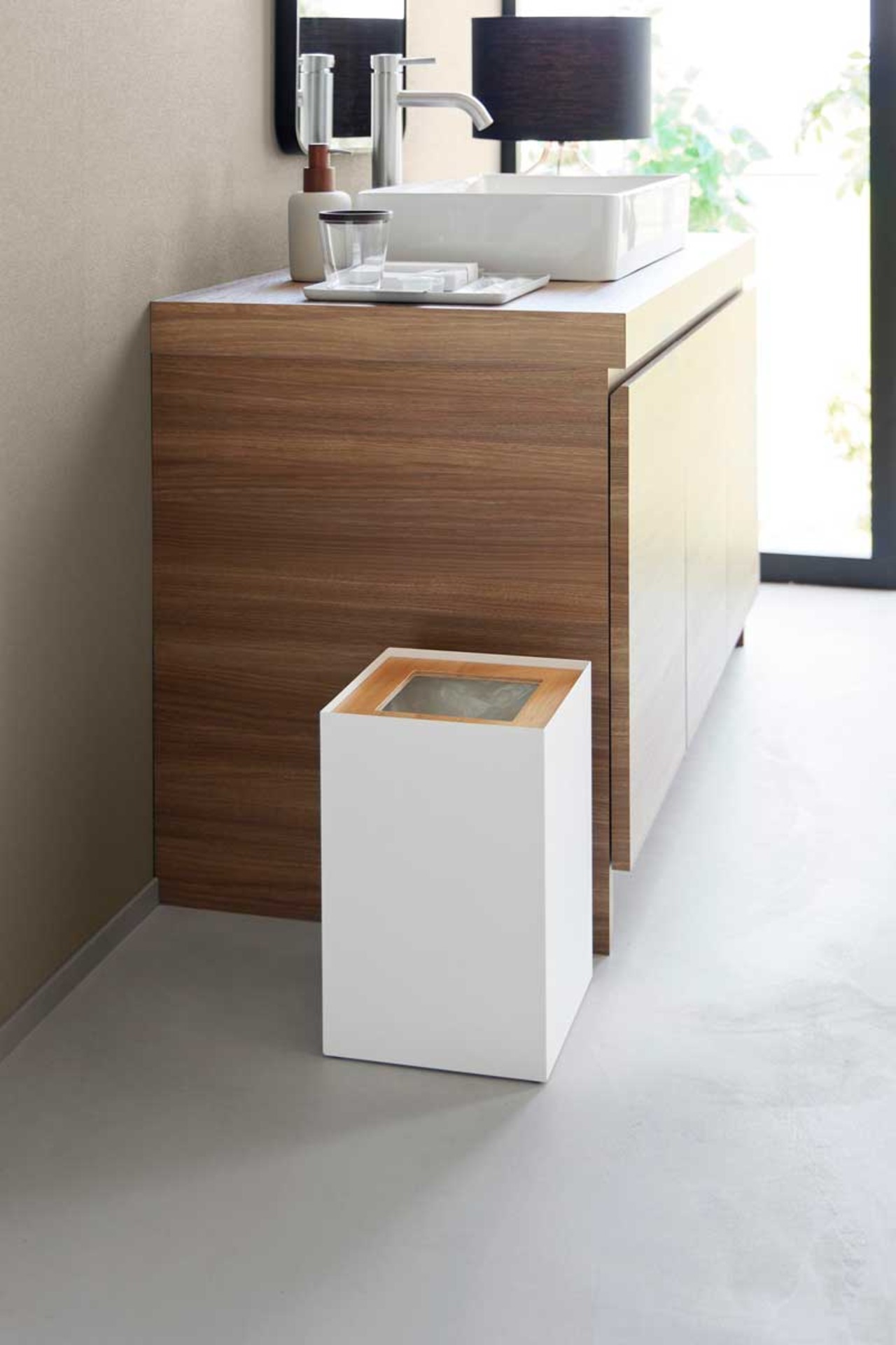 暖かみのある天然木とスタイリッシュなスチールの組み合わせが美しい、スクエア型トラッシュカンです。天然木の蓋は簡単に取り外せ、中のゴミを見えにくくし、清潔で整った印象に。内側のストッパーリングで、ゴミ袋もすっきり隠せます。