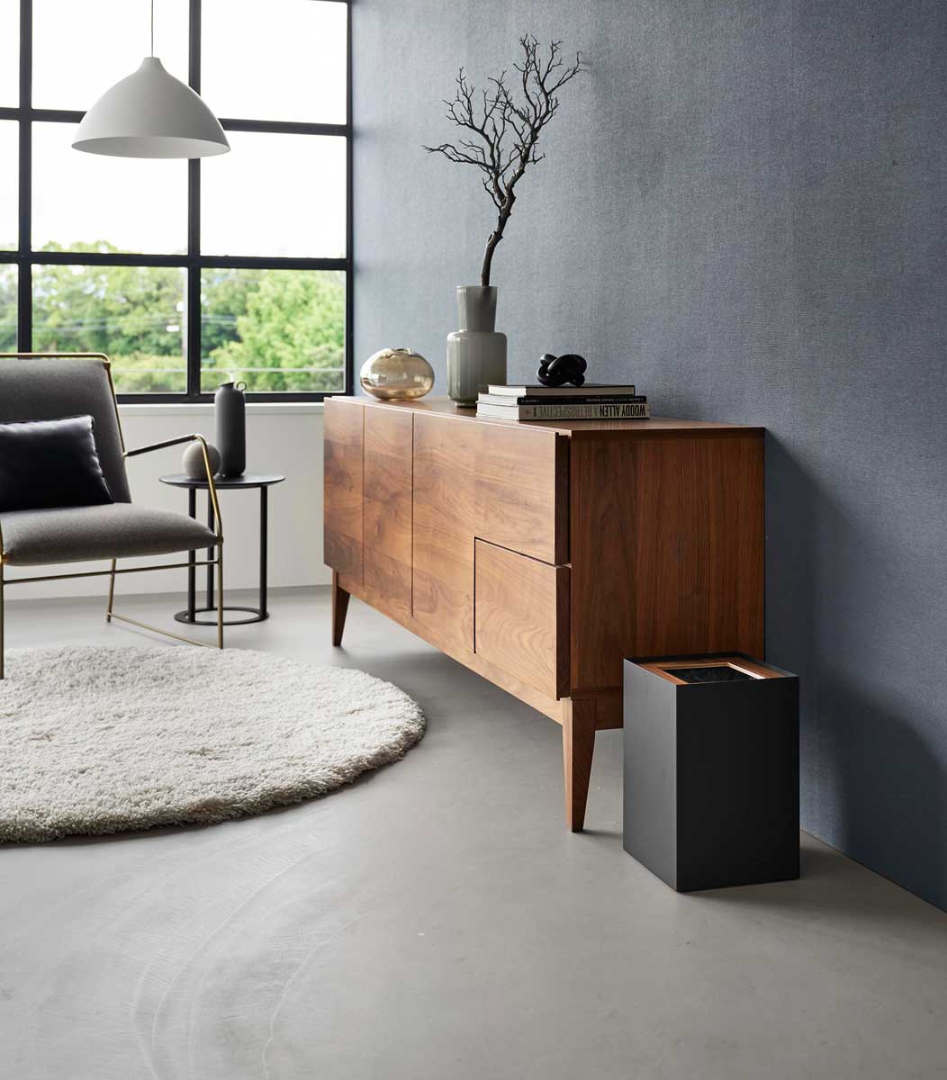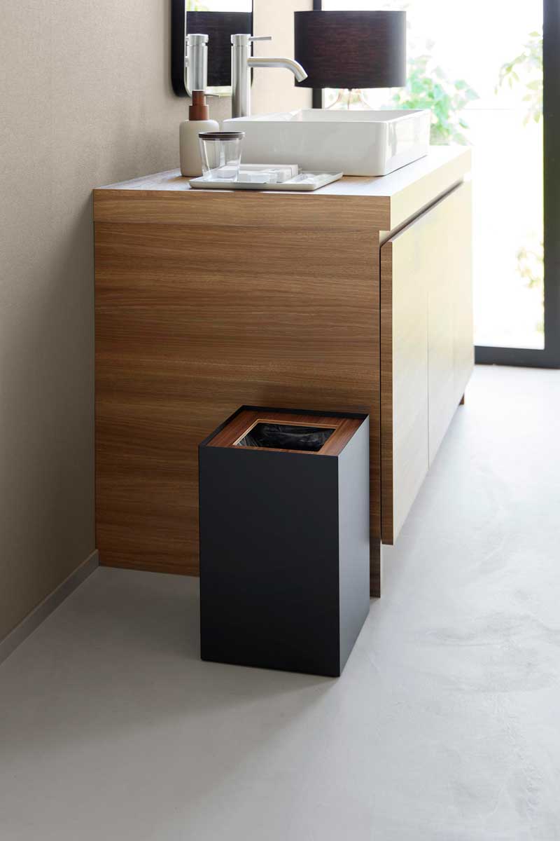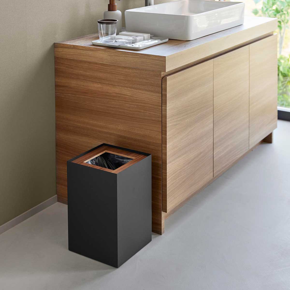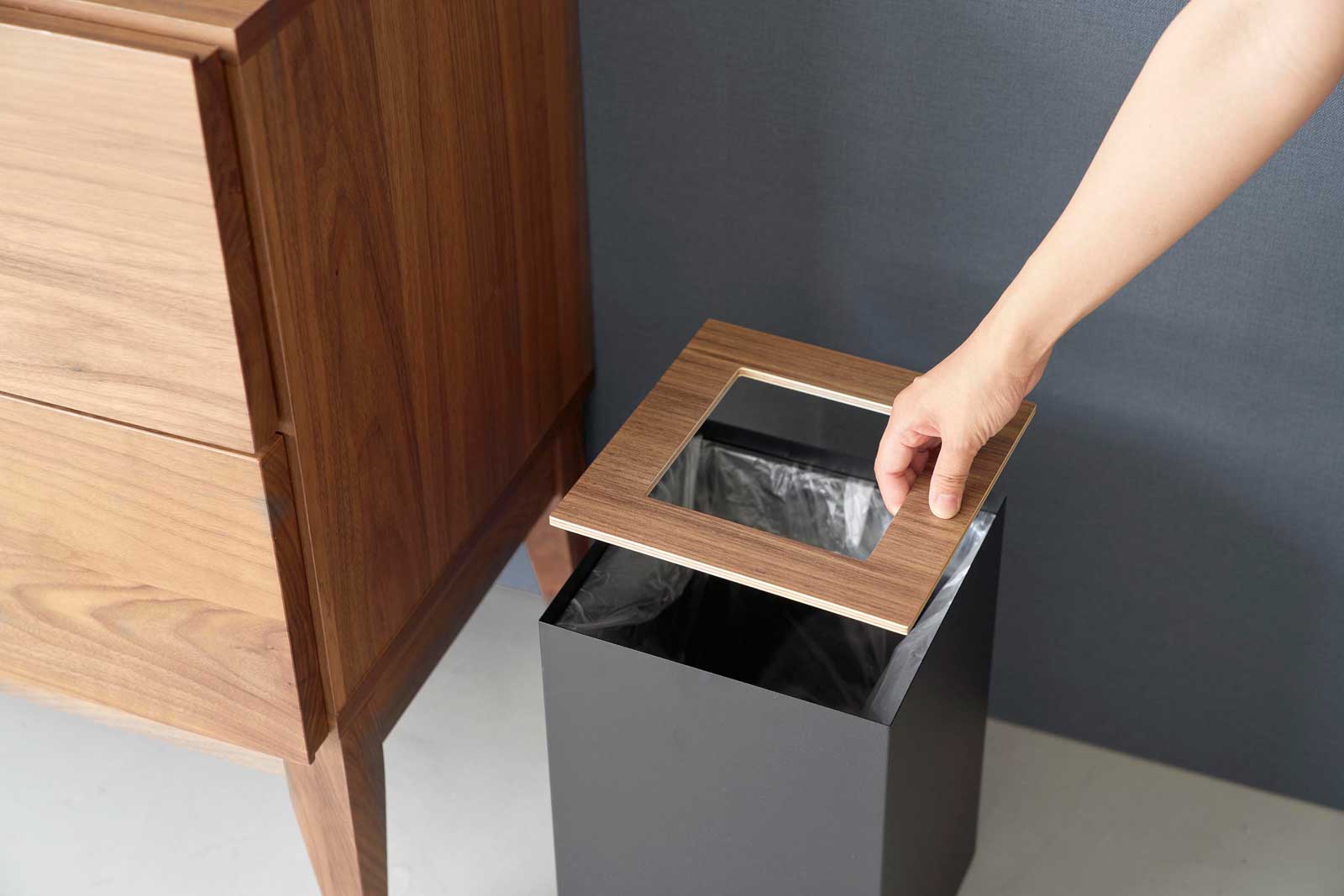 暖かみのある天然木とスタイリッシュなスチールの組み合わせが美しい、スクエア型トラッシュカンです。天然木の蓋は簡単に取り外せ、中のゴミを見えにくくし、清潔で整った印象に。内側のストッパーリングで、ゴミ袋もすっきり隠せます。