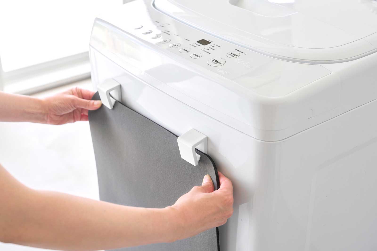 マグネットで洗濯機の側面などに簡単に取り付けられる、バスマット&バスタオルホルダー2個組です。下から差し込むと、シリコーン製のストッパーがバスマットをしっかりとキャッチし、すっきりと収納できます。