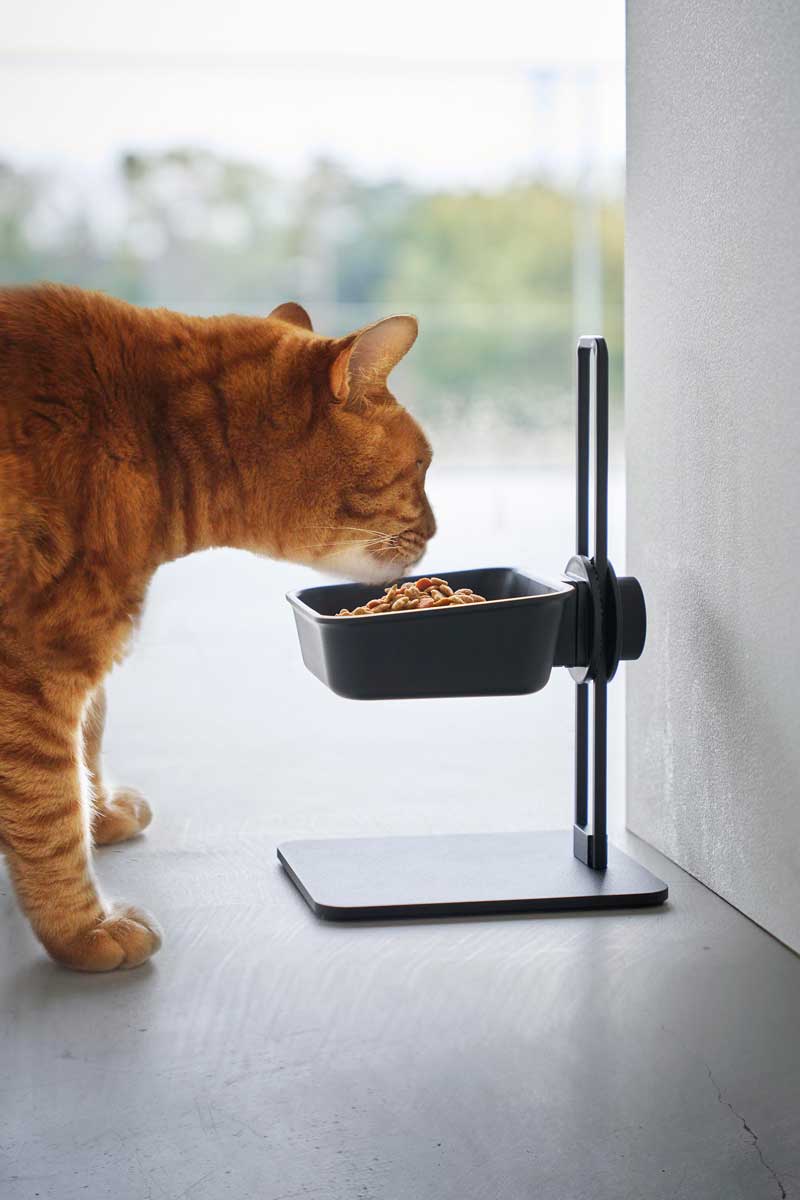 食べやすい高さに調節できるペットフードボウルスタンドです。フードボウルは取り外しやすく、お手入れも簡単。高さを調節することで、ペットの腰や首への負担を軽減できます。フード用、お水用として2個並べて使うのもおすすめです。