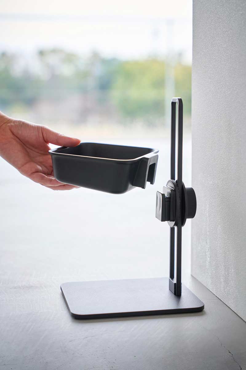 ・主な素材:スチール 粉体塗装(支柱、台座)/ポリプロピレン(ボウル、取り付けフック、固定キャップ)/シリコーンゴム(緩衝材)