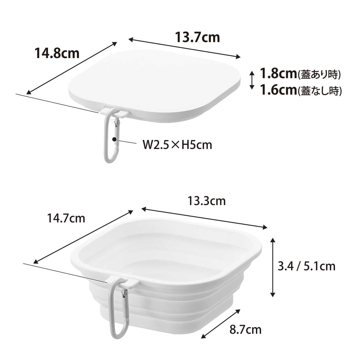 ・サイズ:約W137xD148xH18mm/約W133xD147xH34/51mm(使用時)
