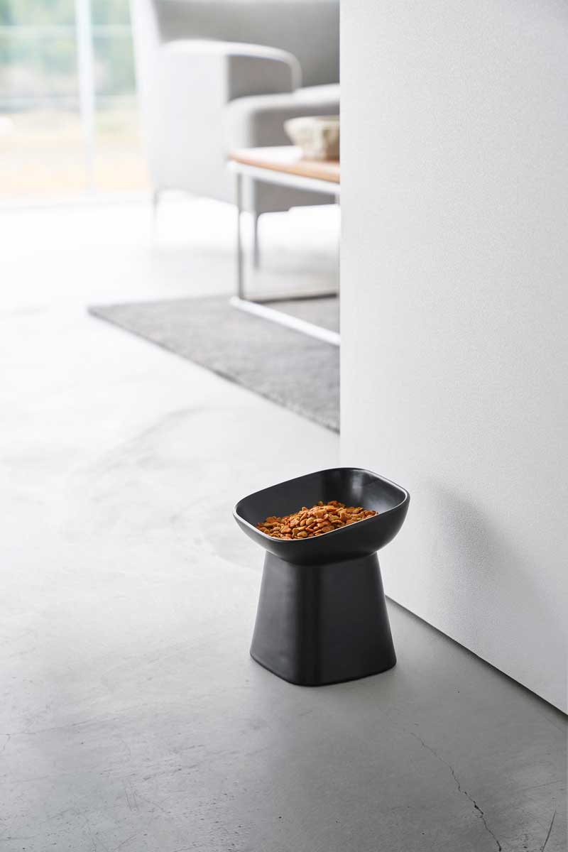 山崎実業 nooks ヌークス 食べやすい高さ陶器ペットフードボウル 斜め H17 10562 ブラック