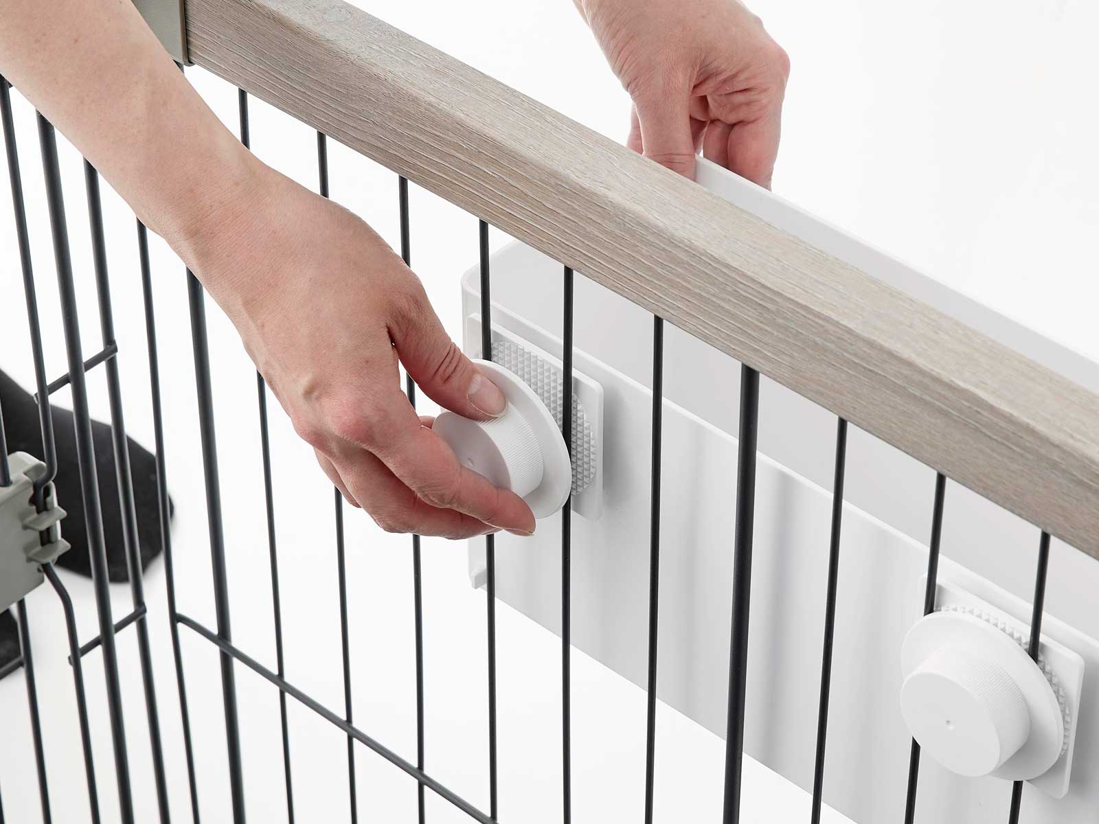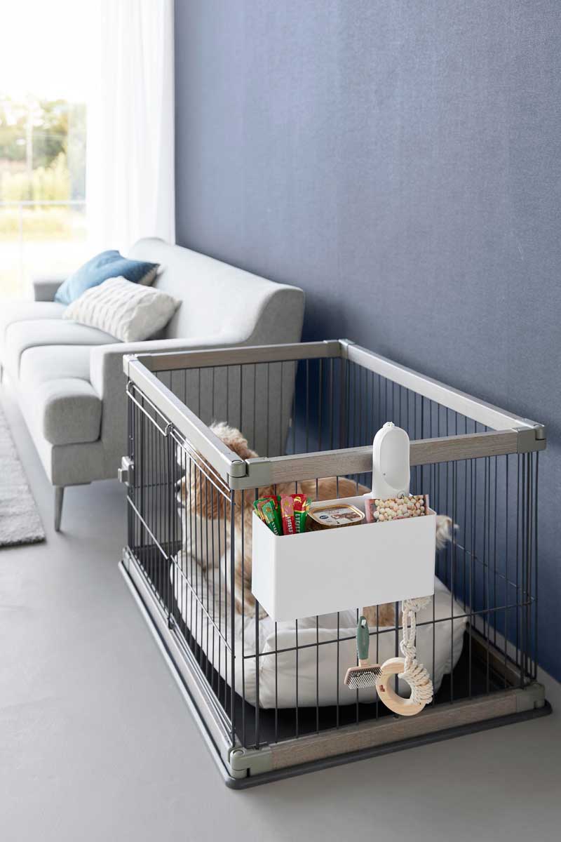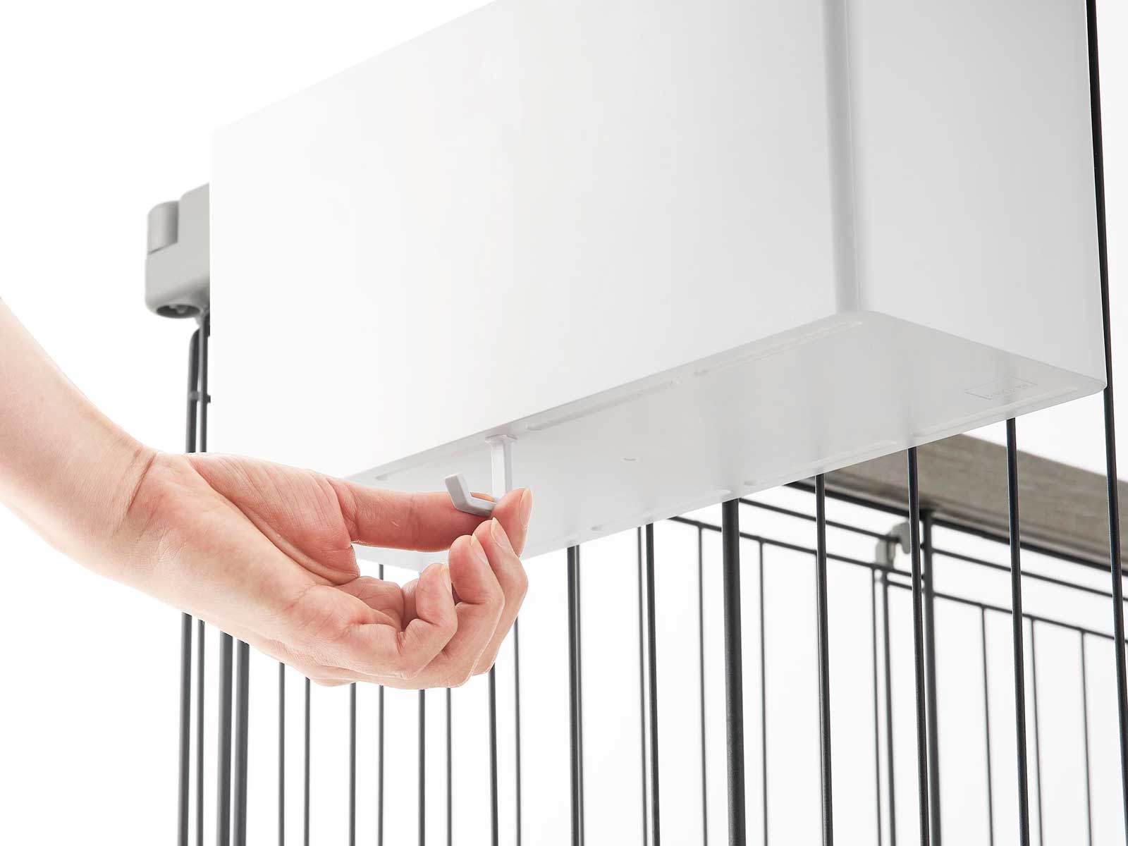 ペットケージに簡単設置で、ケア用品やおもちゃなどの小物を浮かせて収納できる、Lサイズのバスケットです。ペットケージに簡単に取り付けられ、設置位置や高さも自由に調整できます。