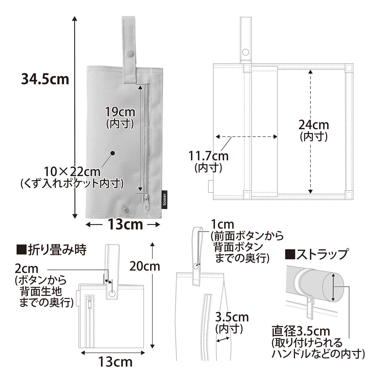 ・内寸サイズ:約W117xD35xH240mm(収納部)/約W100xH220mm(くず入れポケット)