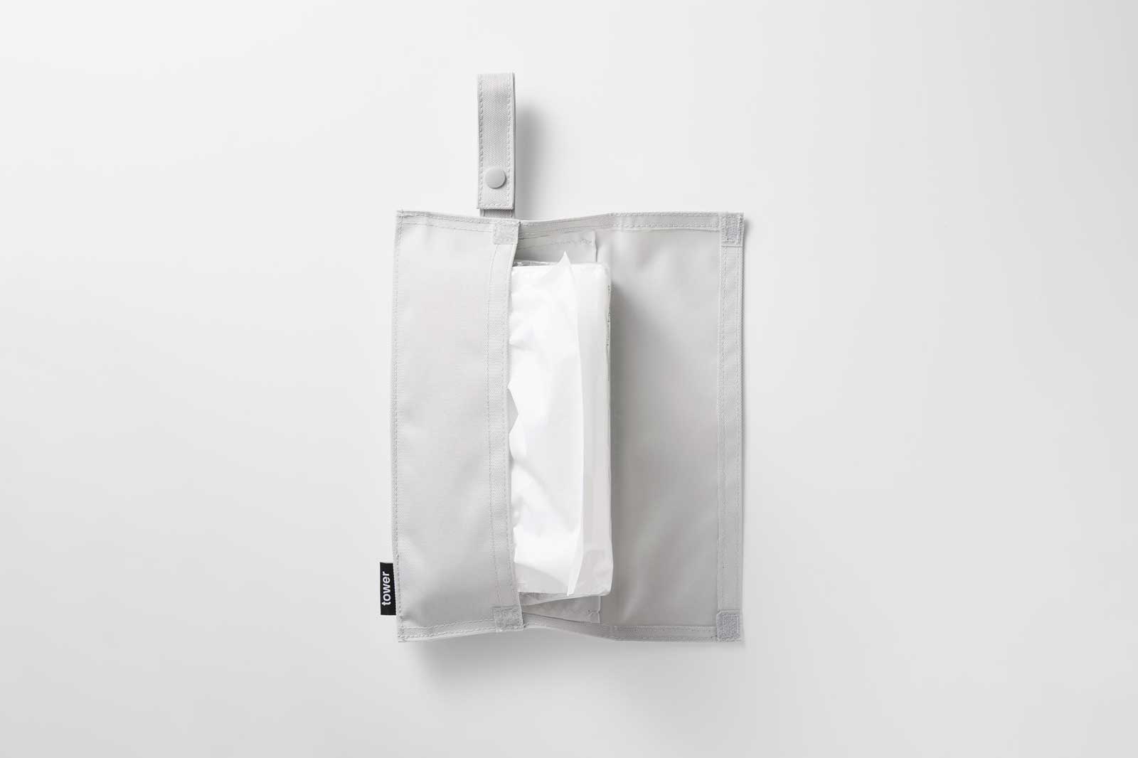 山崎実業 tower タワー くず入れ付き折りたためる携帯ティッシュケース 10735 ライトグレー