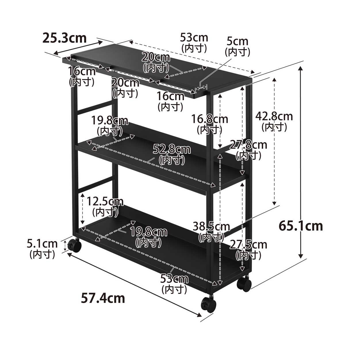 ・内寸サイズ:約W530xD200mm(天板)/約W528xD198mm(可動棚板)/約W530xD198mm(底板)