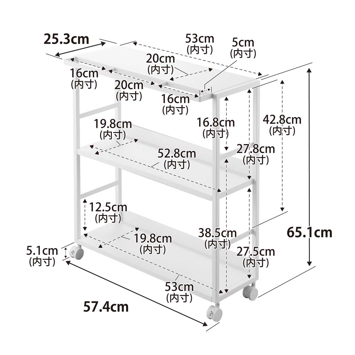 ・内寸サイズ:約W530xD200mm(天板)/約W528xD198mm(可動棚板)/約W530xD198mm(底板)