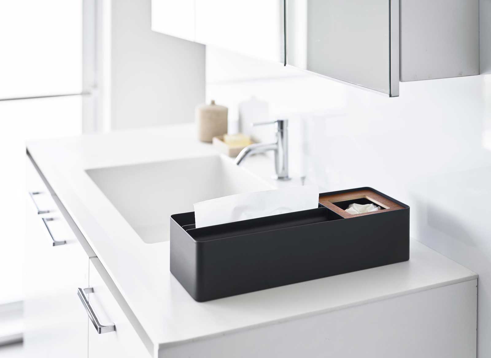 ペーパータオルとゴミ箱をひとまとめに。ホテルライクな置き型オーガナイザーです。ゴミが捨てやすいインナーボックス付きで、使ったその場でサッと捨てられる便利な一体型設計。ペーパータオルはもちろん、箱ティッシュやソフトパックにも対応しています。