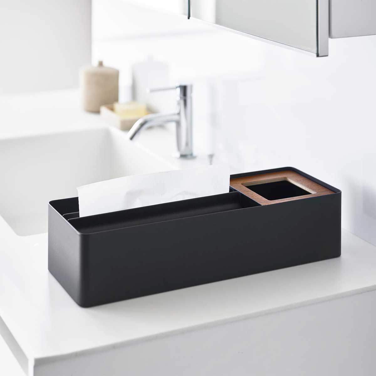 山崎実業 tower タワー ペーパータオル&ダストオーガナイザー ティッシュケース ゴミ箱 10746 ブラック