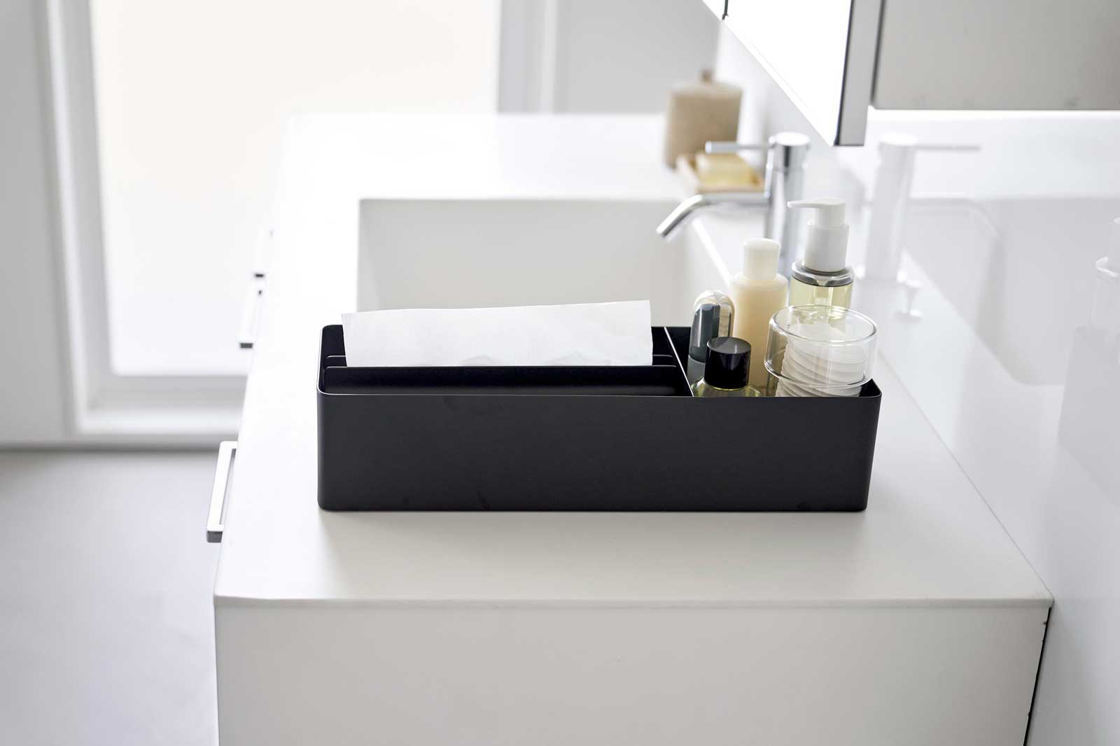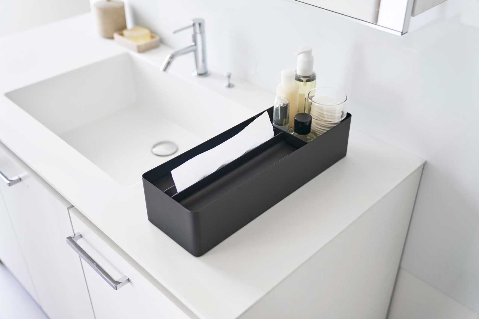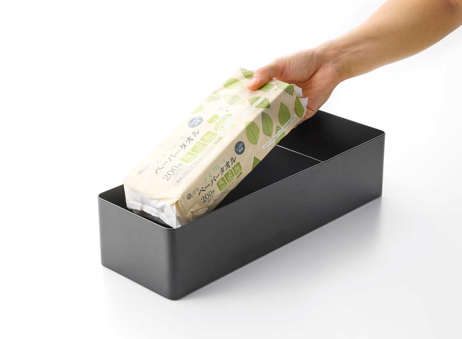 ペーパータオルと小物をひとまとめに。ホテルライクな置き型オーガナイザーです。空間をすっきり整え、清潔感のある印象に仕上げます。ペーパータオルはもちろん、箱ティッシュやソフトパックにも対応しています。