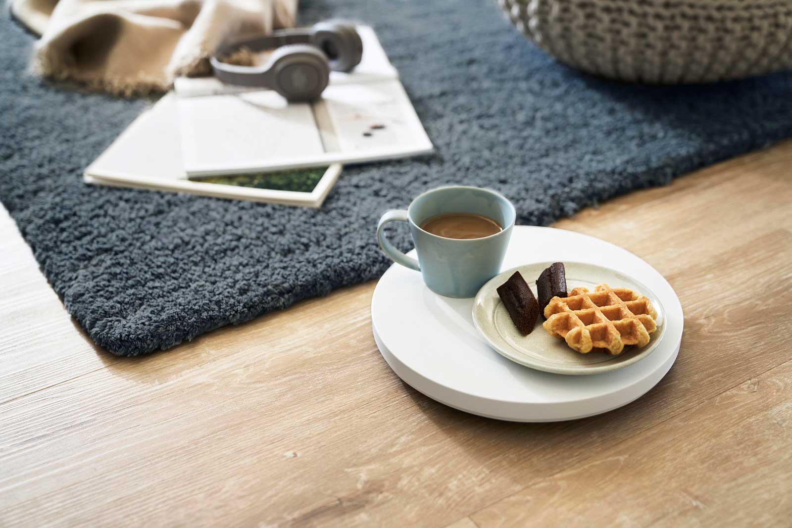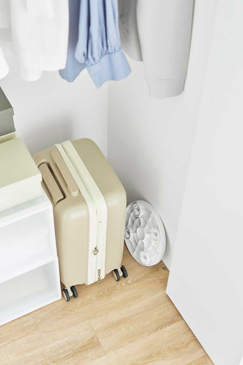 直径26cmで、サーキュレーターやタワー型ファンの設置にも最適。オフシーズンの家電をクローゼットに収納する際にも便利です。薄型なので使わない時は、省スペースに収納可能。簡易的なローテーブルとしてもお使い頂けます。