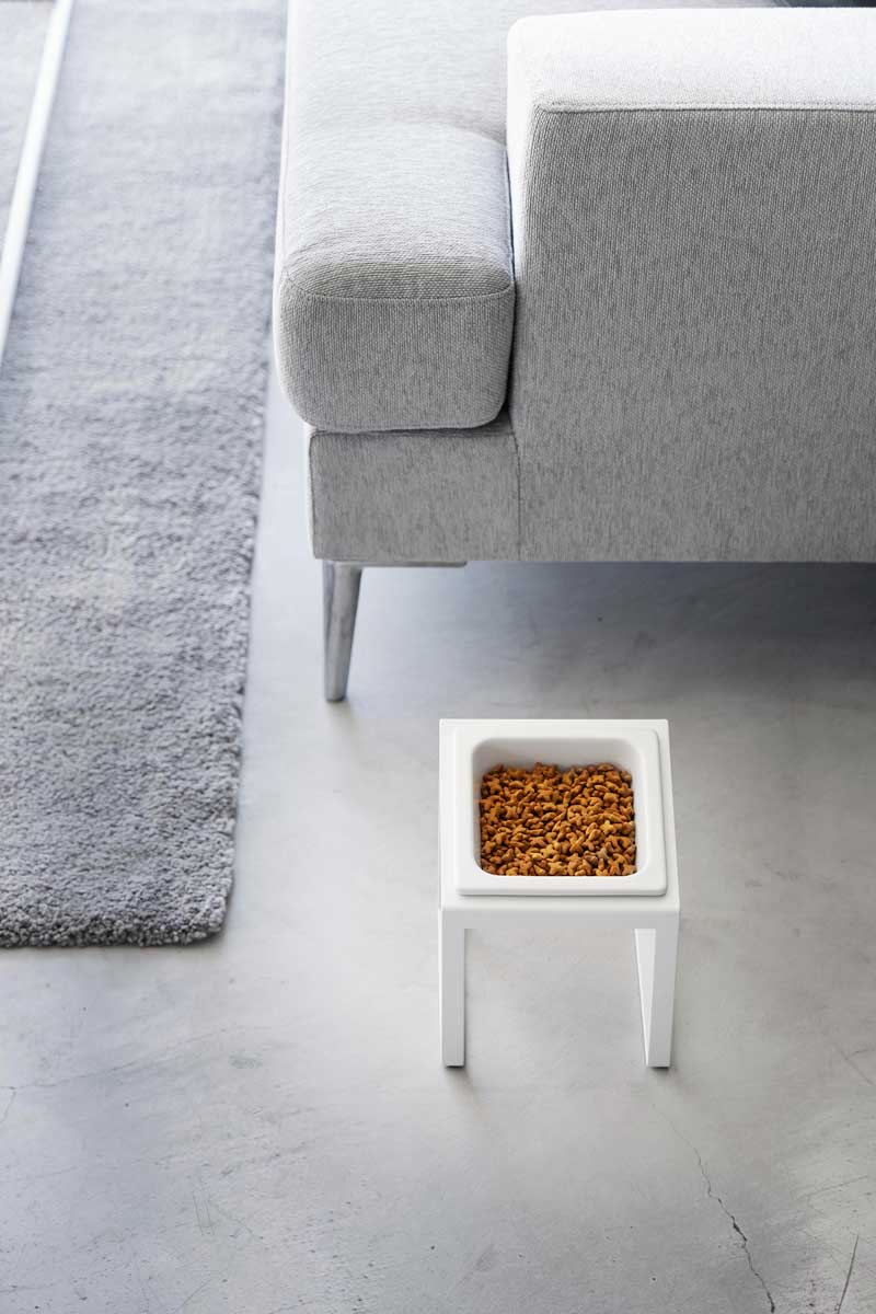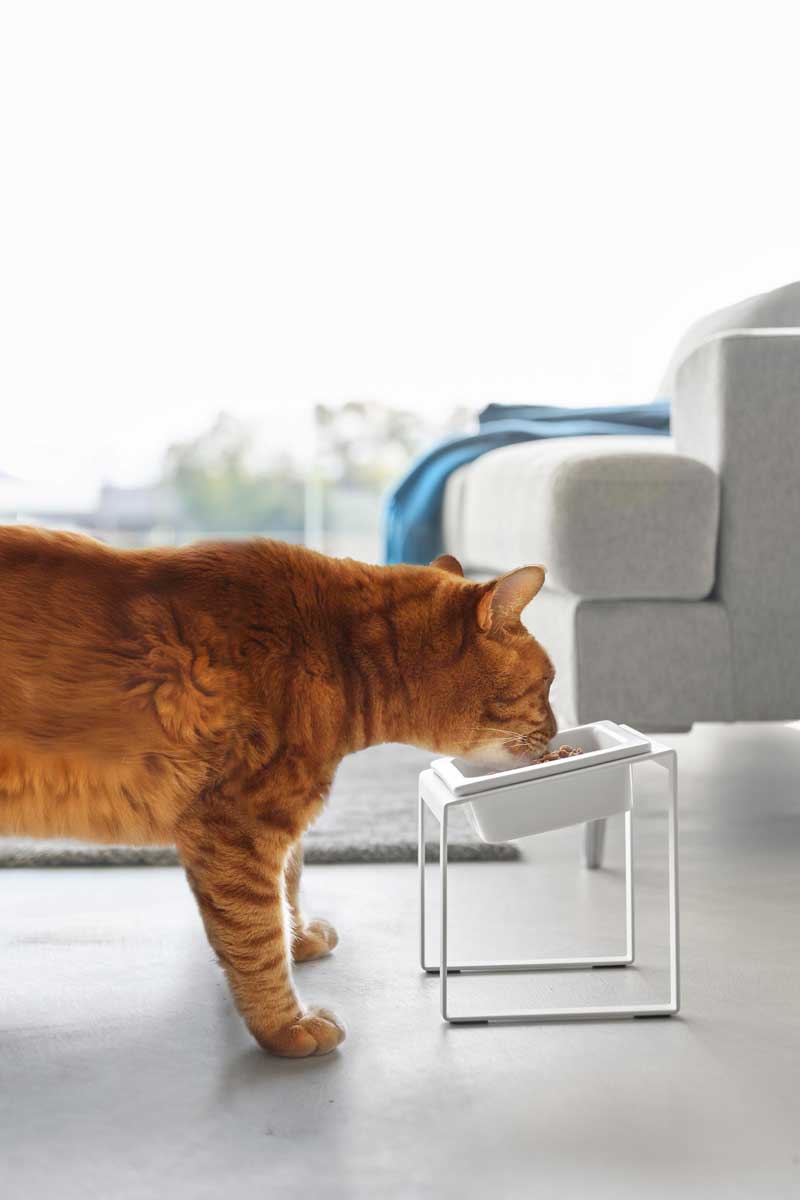 ペットの腰や首に負担がかからず、食べやすい高さと角度のペットフードボウルスタンド。ボウルの位置が高く傾斜がついているので、食べやすくなり食べ残しを防止できます。