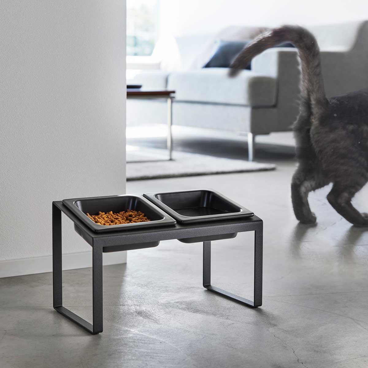 山崎実業 nooks ヌークス ペットフードボウルスタンドセット 斜めハイタイプ 犬猫用 10038 ブラック
