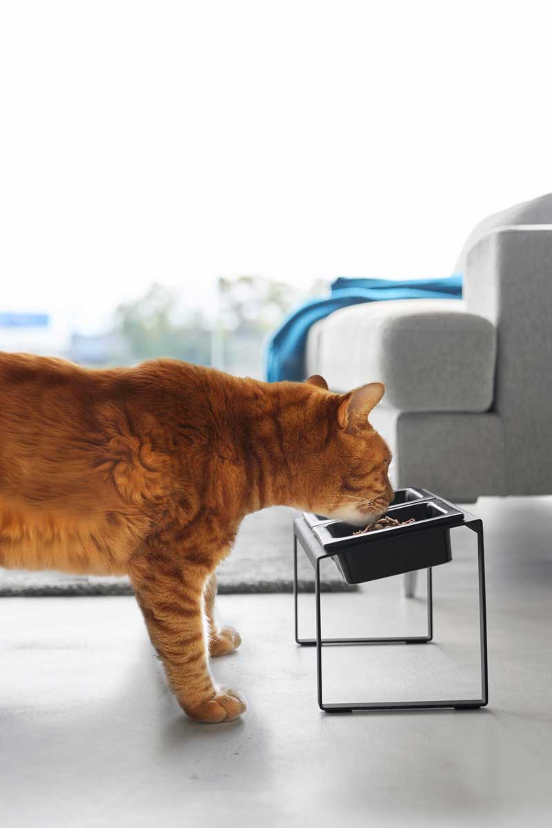 ペットの腰や首に負担がかからず、食べやすい高さと角度のペットフードボウルスタンドセットです。ボウルの位置が高く傾斜がついているので、食べやすくなり食べ残しを防止できます。