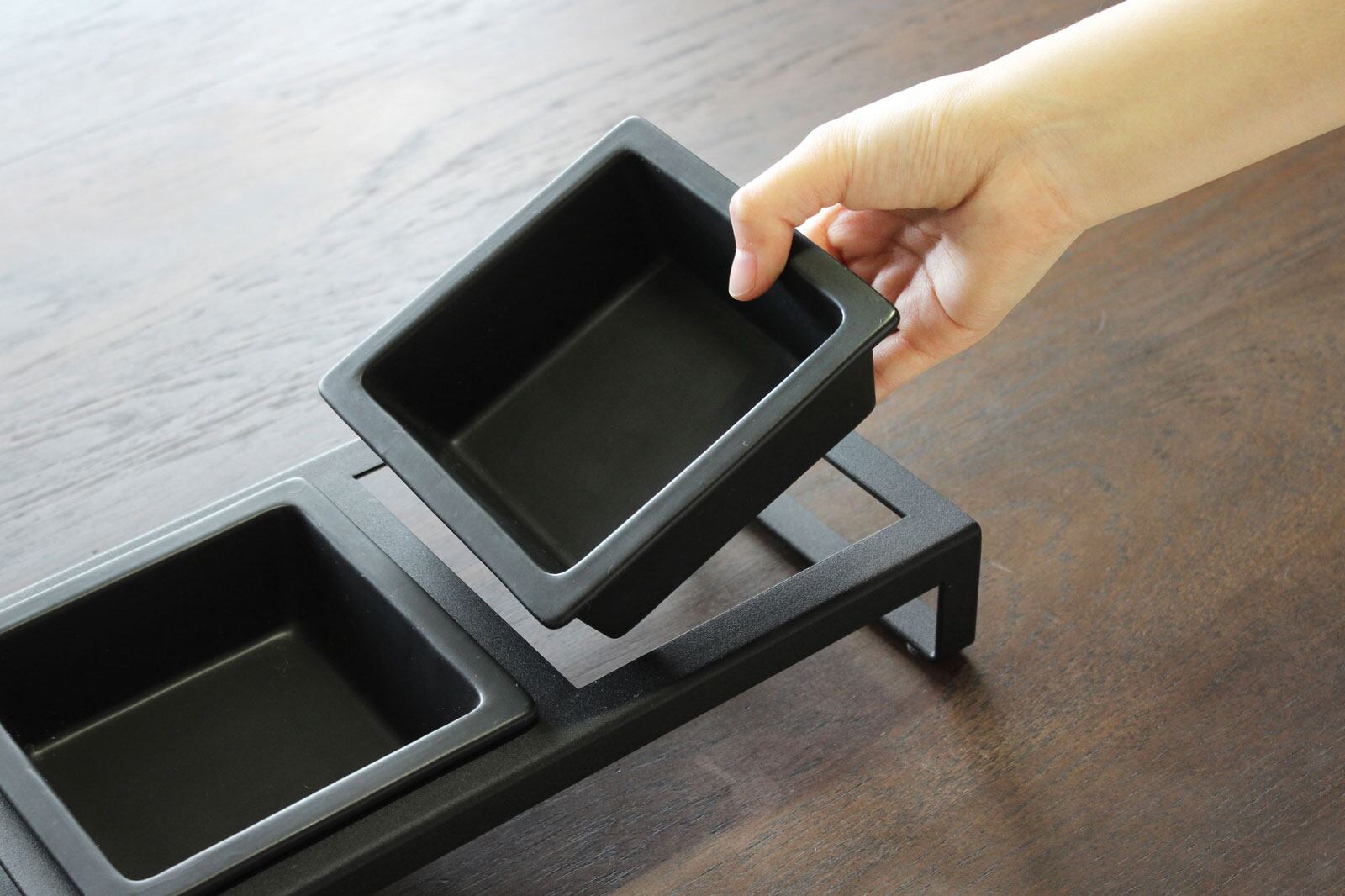 ・サイズ:約W290xD155xH60mm(本体)/約W130xD130xH45mm(ボウル1つあたり外寸)/約W90xD90xH40mm(ボウル1つあたり内寸)