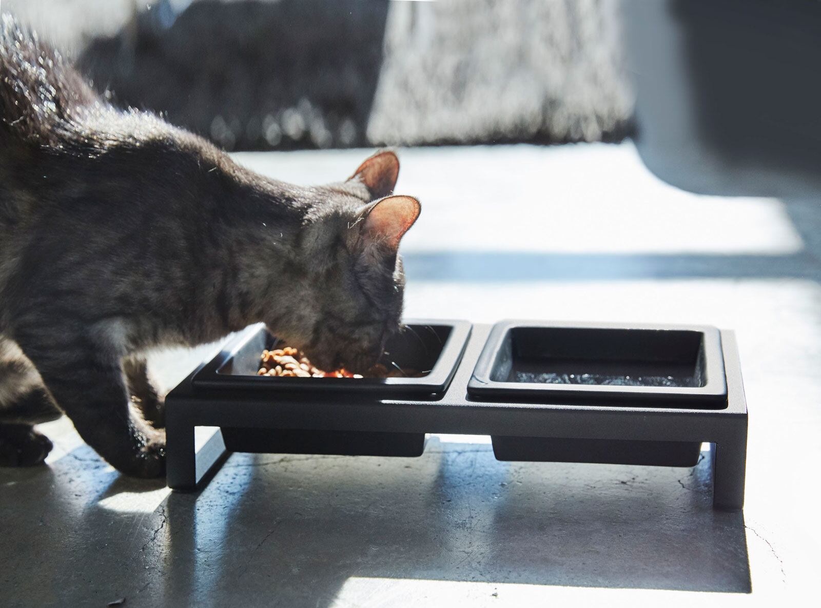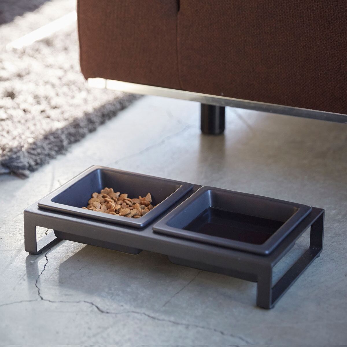 山崎実業 nooks ヌークス ペットフードボウルスタンドセット 犬猫用 陶器製 ブラック