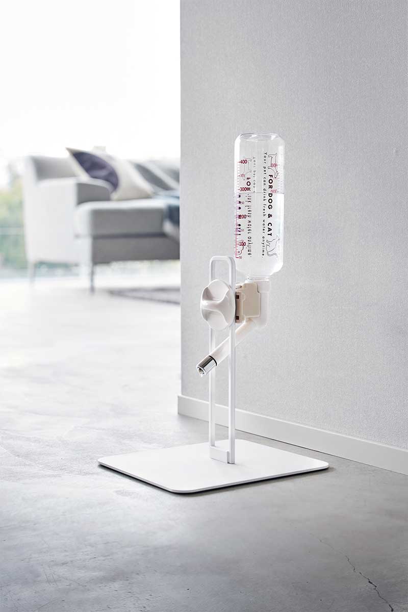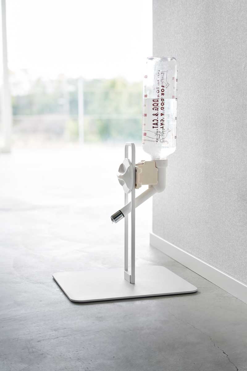 インテリアの一部になるスタイリッシュなデザインの給水器スタンドSサイズ。お好みの場所にペットがお水を飲めるポイントを作れる給水器スタンドです。無段階調整でお好みの高さに合わせられ、500mLまでのボトルが設置可能。受け皿タイプも取り付けることができます。お部屋の邪魔にならないコンパクトなサイズです。