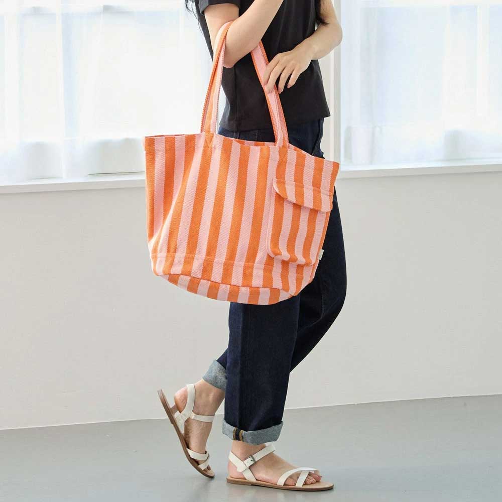 シンプルなのに、ひと味違う。ぱっと目を惹くストライプ。縦と横に異なる色糸を織り込み、表情豊かなストライプに仕立てました。ほどよい個性と落ち着きが心地よく調和したデザインです。カジュアルすぎず、キレイめにも合わせやすい。どんなファッションにもすっとなじむ絶妙なバランス。春夏秋冬のどの季節にも寄り添い、日常の相棒として活躍してくれます。