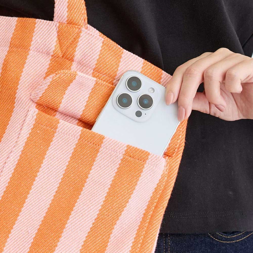 シンプルなのに、ひと味違う。ぱっと目を惹くストライプ。縦と横に異なる色糸を織り込み、表情豊かなストライプに仕立てました。ほどよい個性と落ち着きが心地よく調和したデザインです。カジュアルすぎず、キレイめにも合わせやすい。どんなファッションにもすっとなじむ絶妙なバランス。春夏秋冬のどの季節にも寄り添い、日常の相棒として活躍してくれます。