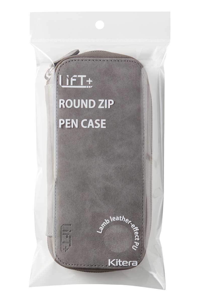 Kitera LIFT+ キテラ リフトプラス ラウンドジップペンケース レザー調 グレー