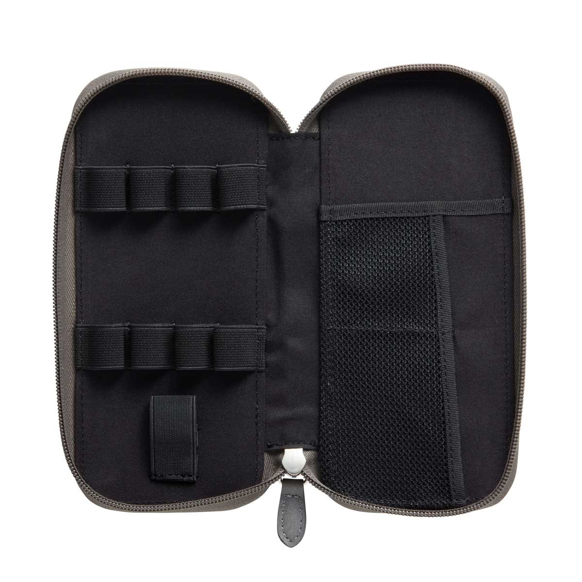 LIFT+ラウンドジップペンケースは、LIFT+世界観を損なわないデザイン。内部に伸縮するゴムループを使用した4本のペン差し、消しゴム収納、右側に3つの収納ポケットを備えた、シンプルかつ実用設計のペンケースです。