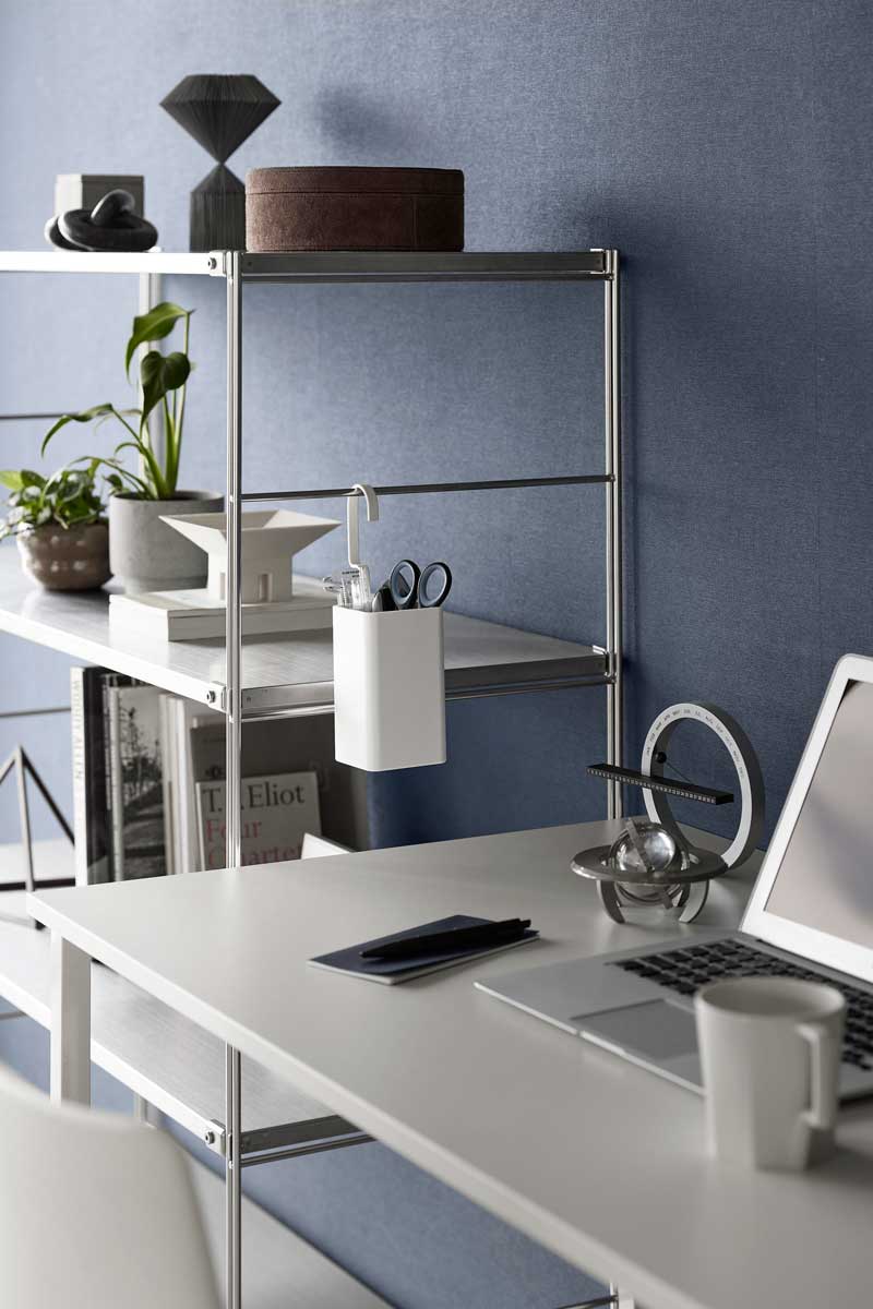 設置場所に合わせてフックの向きを変えられる、引っ掛け収納ケースです。フックの差し込み口がT字型のため、90度ずつ向きを変えて4方向に引っ掛けられます。デスク用品やペット用品の整理にも便利です。