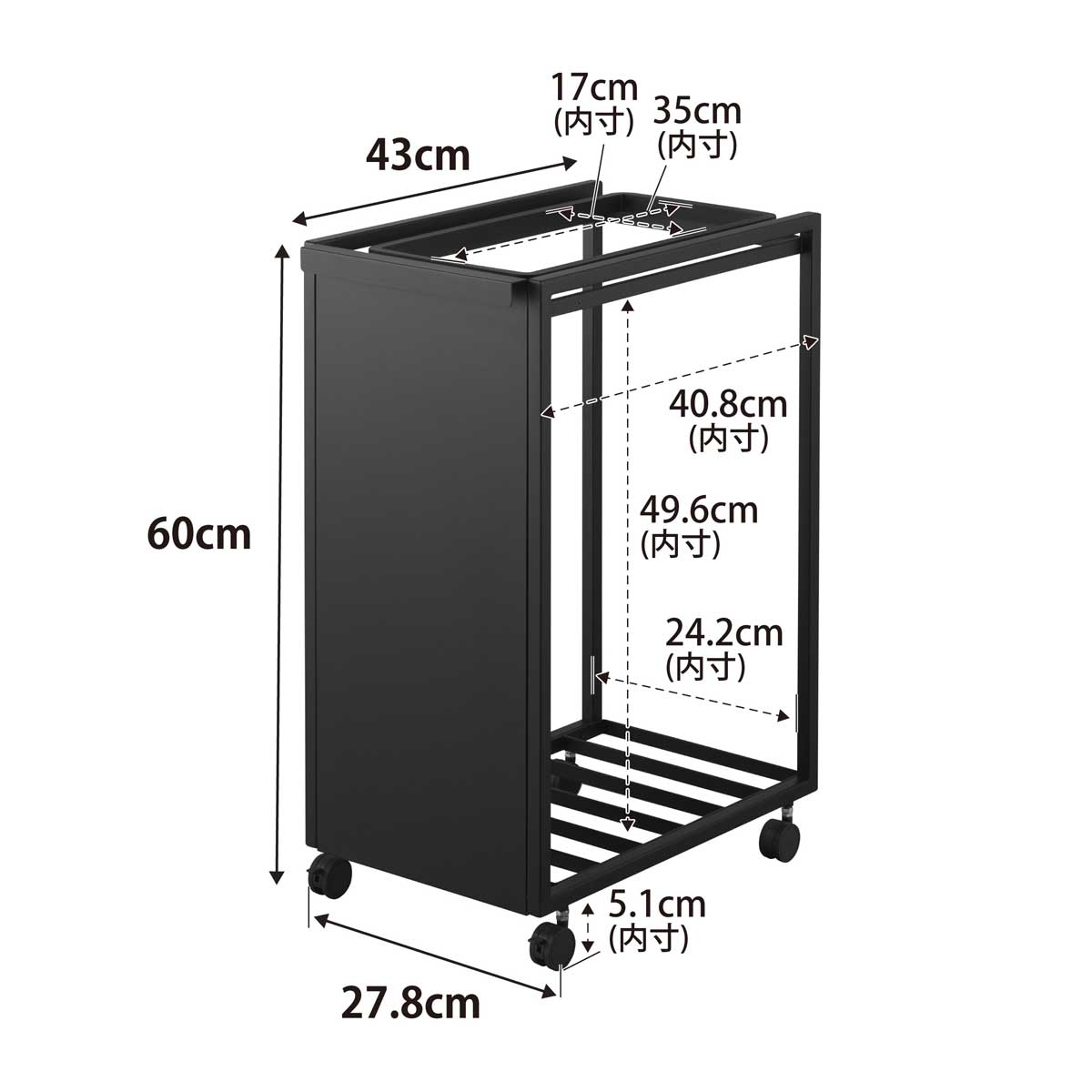 スリム目隠しダストワゴン タワー 45L