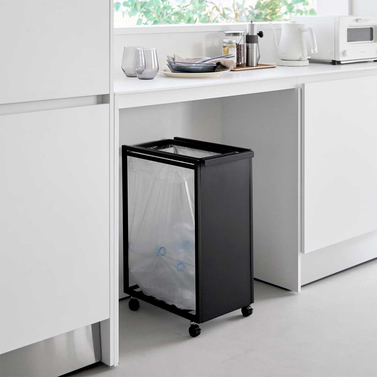 45Lのゴミ袋を目隠しできる、スタイリッシュなダストワゴンです。カウンター下のスペースに収まる設計で、生活感を抑えながらすっきり収納でき、インテリアにも自然に馴染みます。キャスター付きのため、移動やお掃除もラクに行えます。