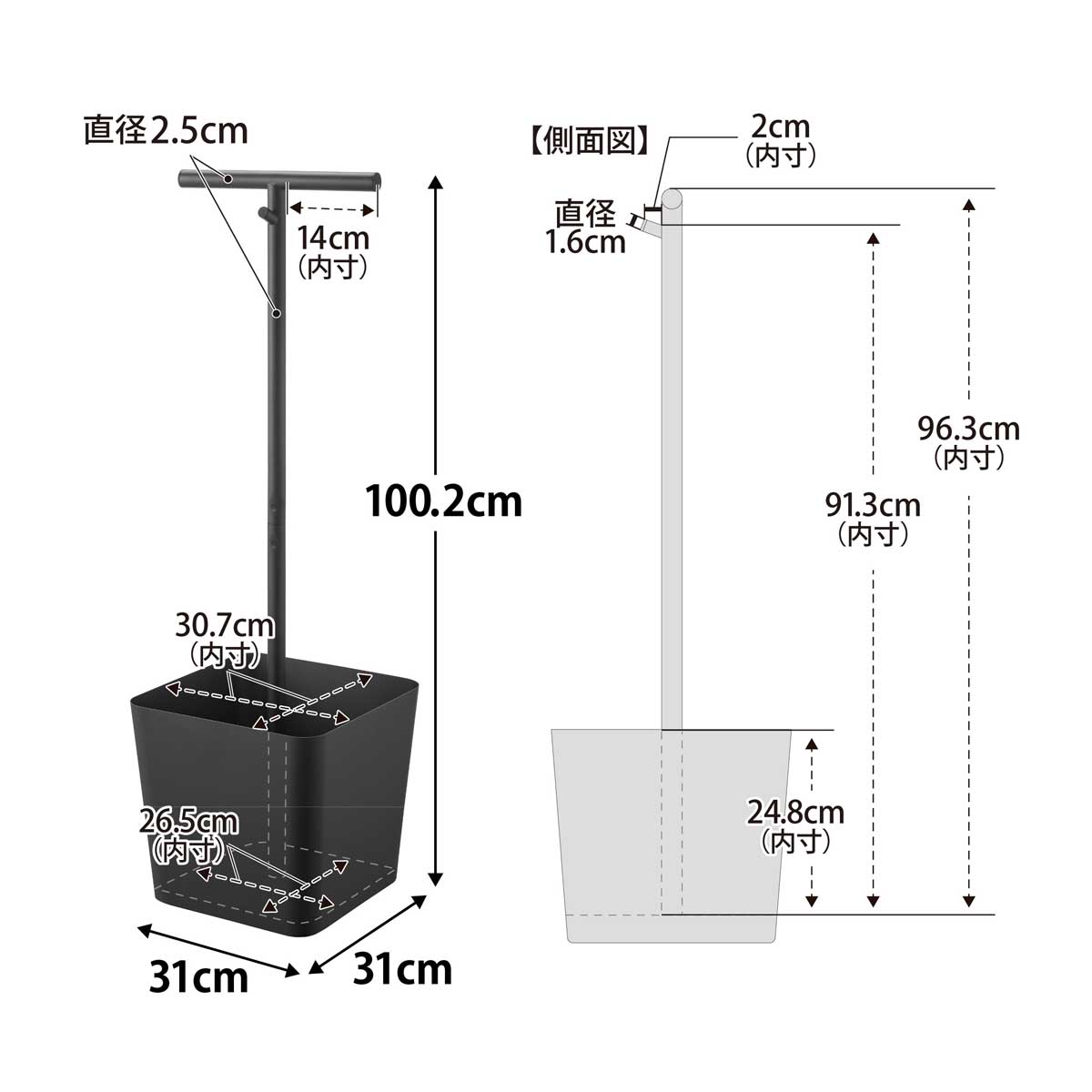 ・内寸サイズ:約W140xD25xH25mm(ハンガー片側あたり)/約W265xD265mm(バスケット底部)/約W307xD307mm H24.8cm(開口部)/約W16xD20mm(フック)