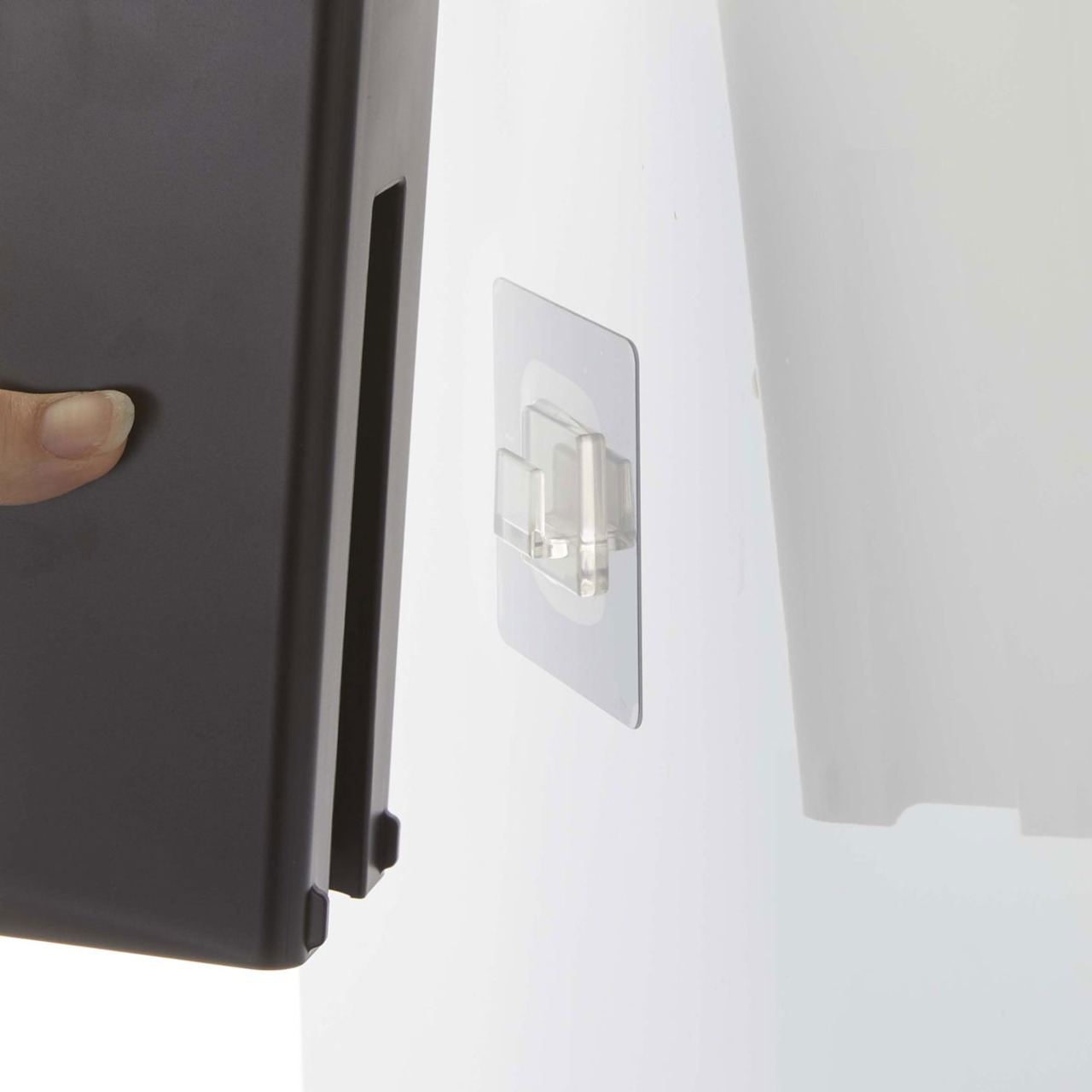 フィルムフックで壁面に浮かせて収納できるから、底がぬめらず衛生的です。壁面のフィルムフックにかけるだけの簡単取り付け。蓋が外れるので、詰め替えが簡単。詰め替え用の袋も、そのまま入ります。