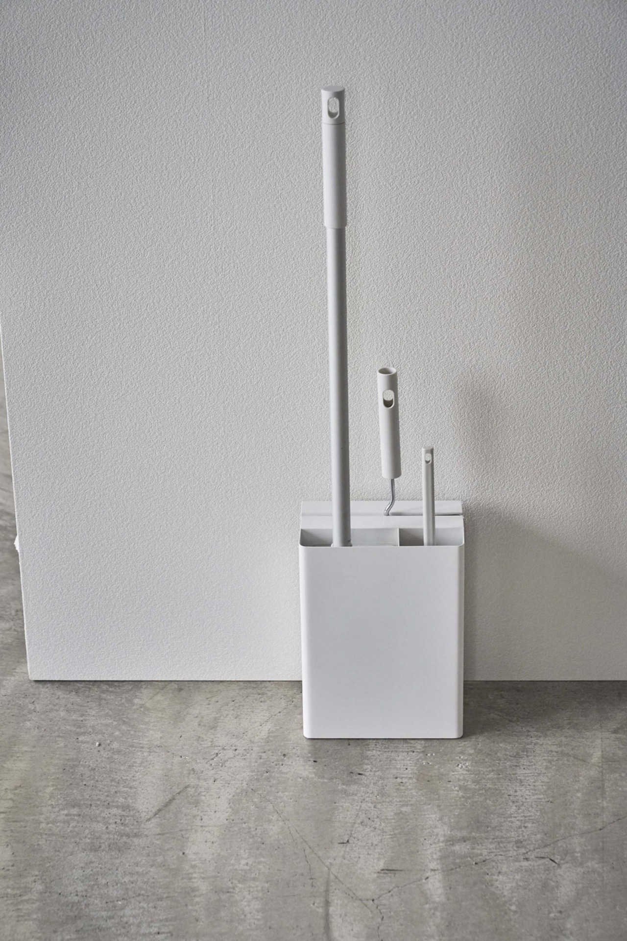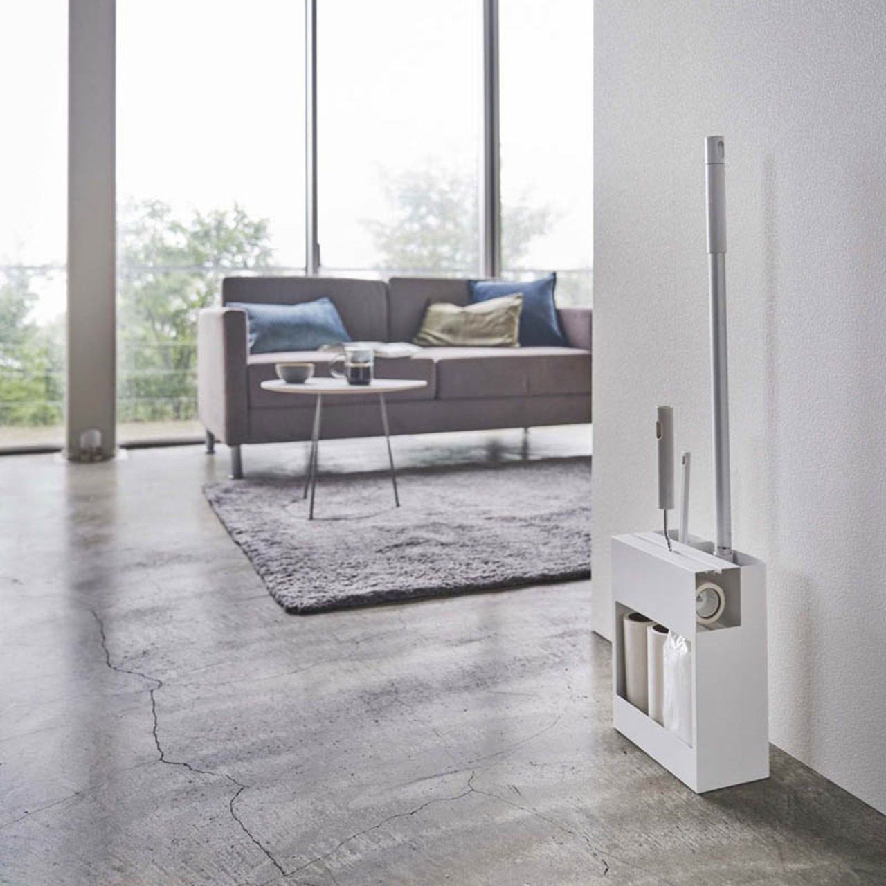 お掃除ツールを隠して一括収納できる便利なスタンド。スタイリッシュだからリビングやサニタリー、廊下などでも主張しすぎず、置き場所に困らない美しい佇まいのデザインです。