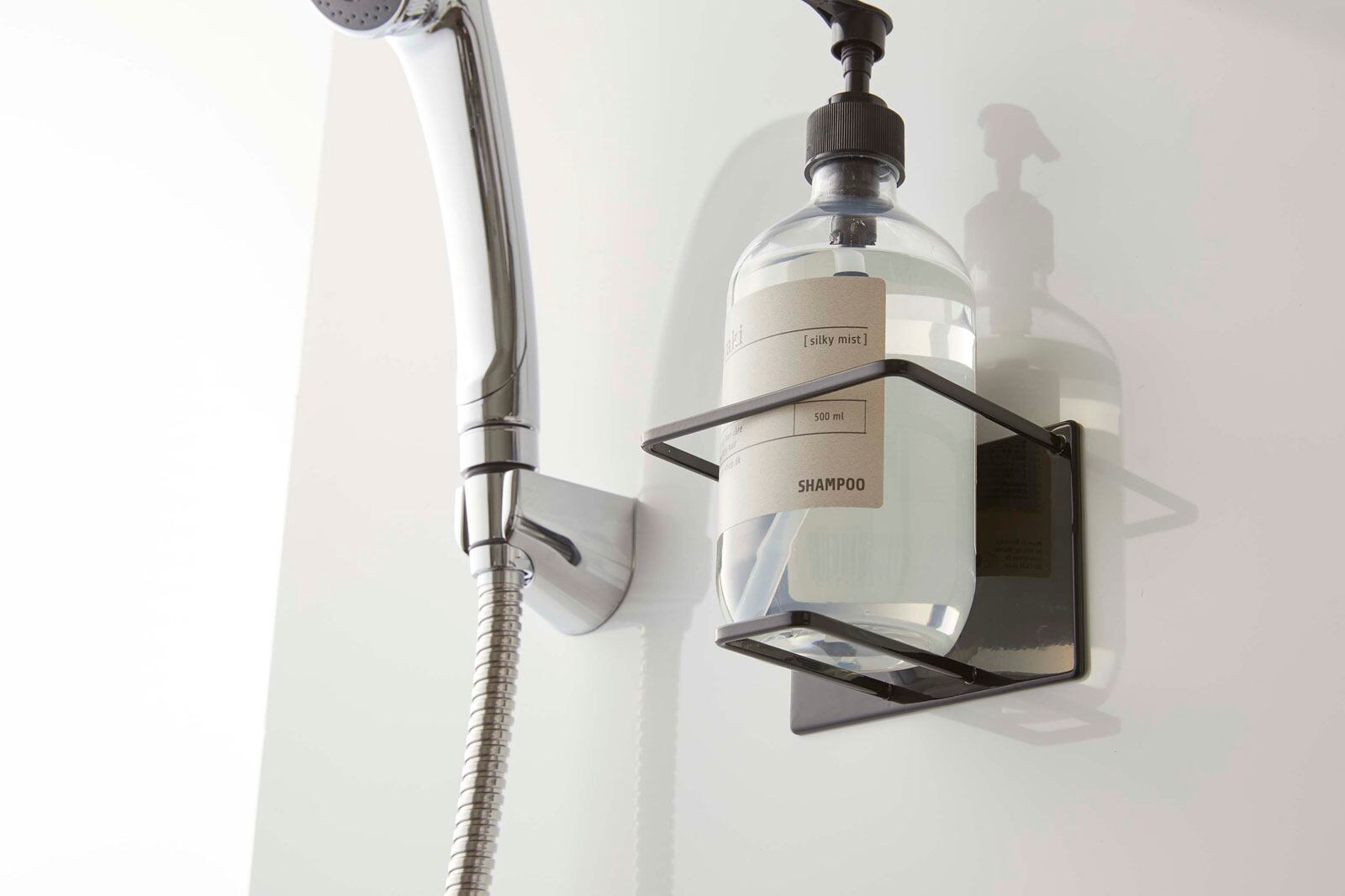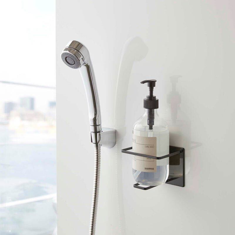 使いやすい位置に、シャンプーやボディーソープなどのボトルを収納する、タワー マグネットバスルームチューブ&ボトルホルダー Lサイズ。上から入れるだけの簡単設計。底に当たる接地面を少なくすることで、ぬめりを防止します。