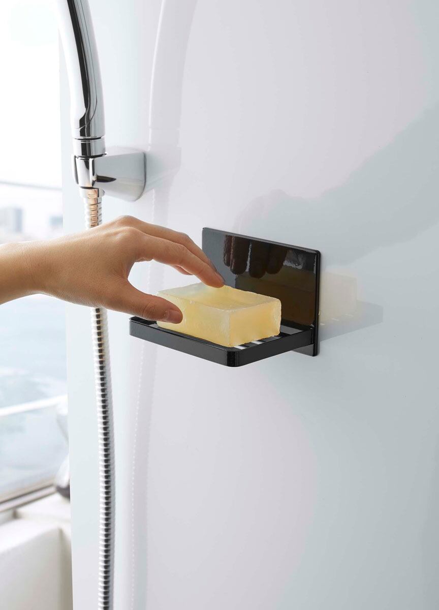 水はけの良いソープトレーで、石けんも清潔に長持ちします。本体はマグネット式で、お風呂の壁に簡単取り付けできます。