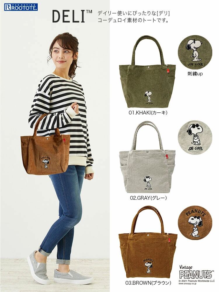 ROOTOTE スヌーピーバッグ ルートート デリマルシェ.ピーナッツ ジョークール グレー