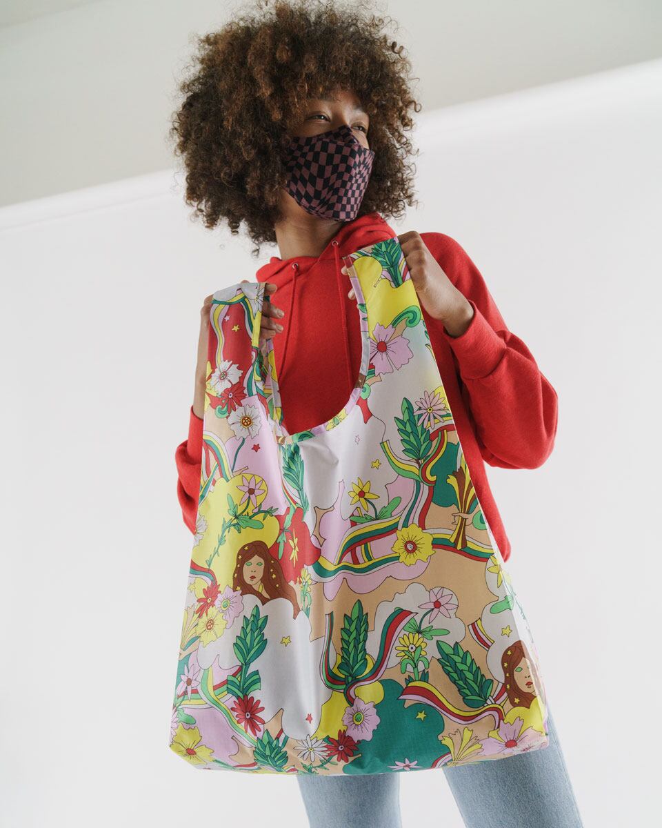 カリフォルニア生まれのBAGGUより、もっとも売れている定番サイズのエコバッグ。ショッピングをはじめ、レジャーやジムなどのシーンにもおすすめ。付属の専用ポーチには、折りたたんだスタンダードバグゥを入れて持ち運べます。