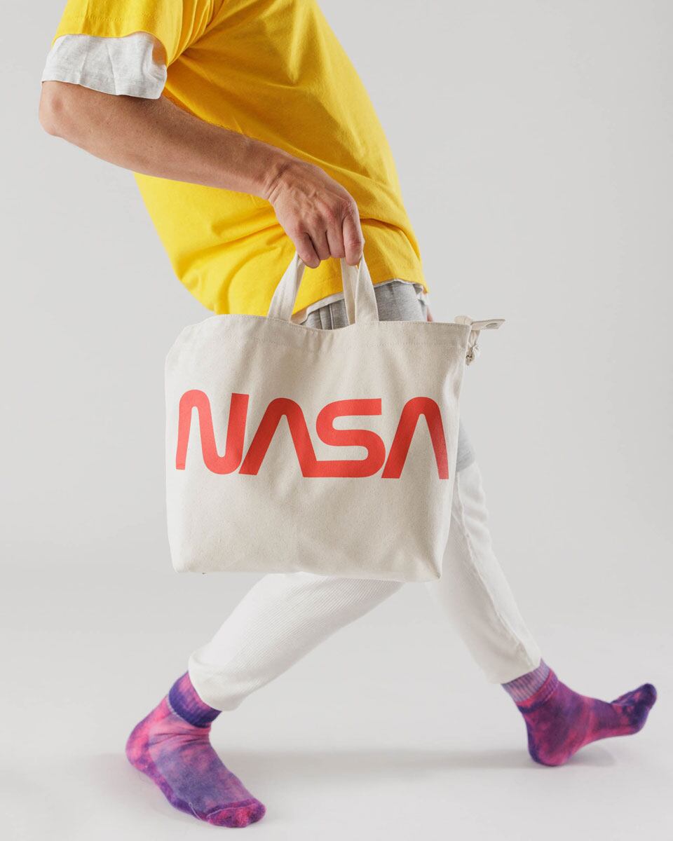 NASA(アメリカ航空宇宙局)からインスピレーションを得たコレクションより、Duck Bag Inspired by NASAシリーズ。マチもしっかりとあって、たっぷり収納できる、2WAYトートバッグ。入り口部分はスナップ付きで外から荷物を見えにくく、内側にはジッパー式のポケットがあります。ショルダーストラップは長さ調節可能です。