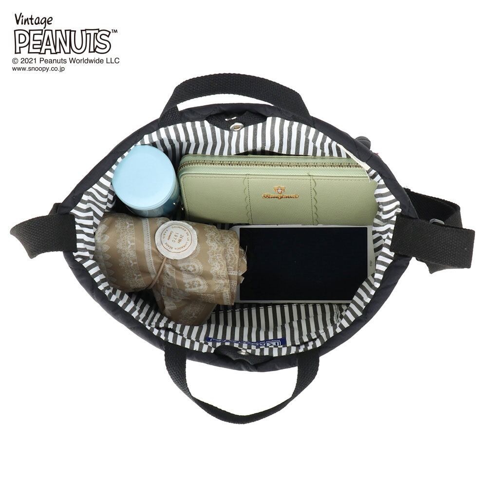 スヌーピーのワンポイント刺繍がかわいい2wayトート。ショルダー付き(取り外し不可)で、トートバッグ・ショルダーバッグとしてお使い頂けます。中綿入りで布地にプクッと立体感が出て、おしゃれでかわいい仕上りに。
