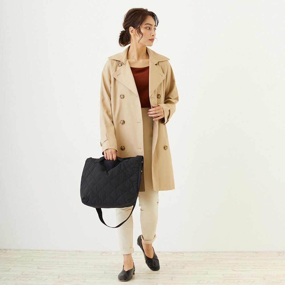 汚れや水に強い撥水加工で、雨の日も晴れの日もデイリーに使える頼もしいトートです。ショルダー付き(取り外し不可)でトートバッグ、ショルダーバッグの2way仕様で、肩掛けや斜めがけもできます。13インチノートPCやA4サイズの書類、ランチボックス、ボトル、コスメポーチなども収納できて、通勤や通学に便利です。