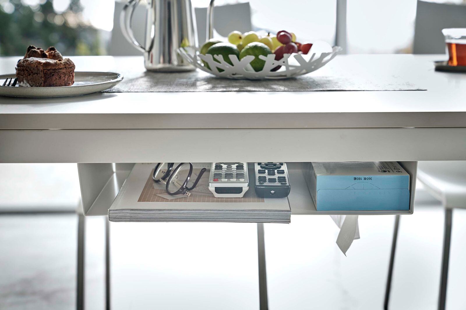 散らかりがちなリモコンやティッシュ類を一括収納できるのでテーブルが広々使えます。製品底面からティッシュを引き出せます。リモートワークにもおすすめです。