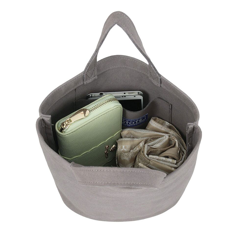 やわらかくてやさしい、あたたかみのあるマイクロスエード素材のレディーストート。見た目も、触り心地も、癒されます。少し丸みのあるかわいいサイズ。必要なものだけをシンプルに持ち運べます。外ポケットは、ハンドクリームや消毒スプレー、リップクリーム、マスクケースなど、小物の収納に便利です。