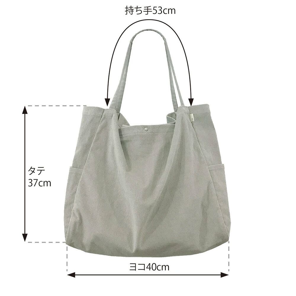 洗い加工を施したコーデュロイの心地よい肌ざわり、毎日の使用に最適なレディーストート。毎日使うものだから、洗濯可能で衛生的に安心してご利用いただけます。肩掛けしやすいつくり。マチもたっぷり、たくさん荷物が入って収納力抜群です。