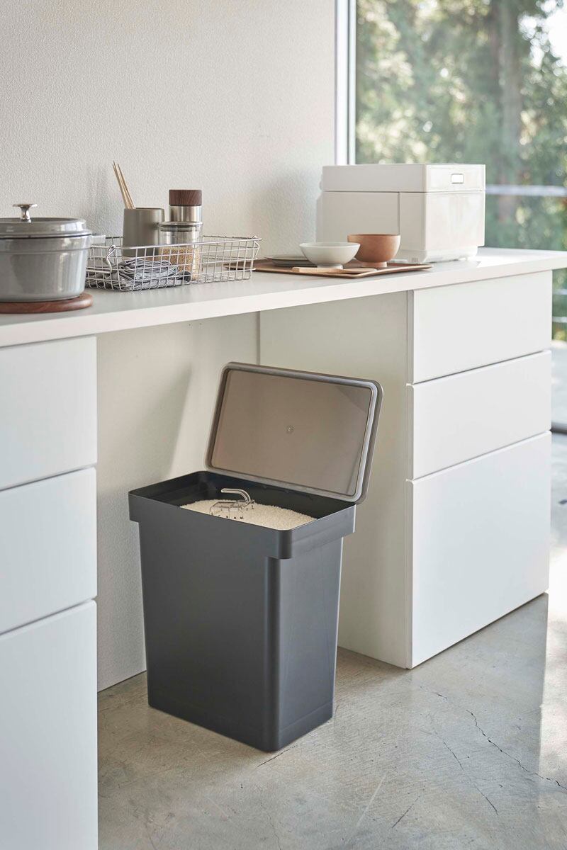 ・主な素材:ポリプロピレン(容器)/ABS樹脂(蓋)/POM樹脂(キャスター)/シリコーン(パッキン)/アクリル樹脂(計量カップ)