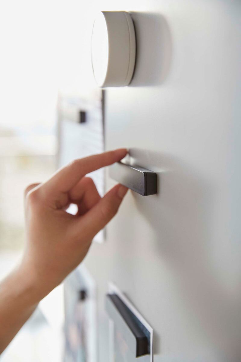 幅約10cmの横長ワイドサイズが使いやすいマグネットバー 4個組。側面が斜めになっているので取りやすいです。バスルームで子供のお勉強シートを貼るのにも使えます。