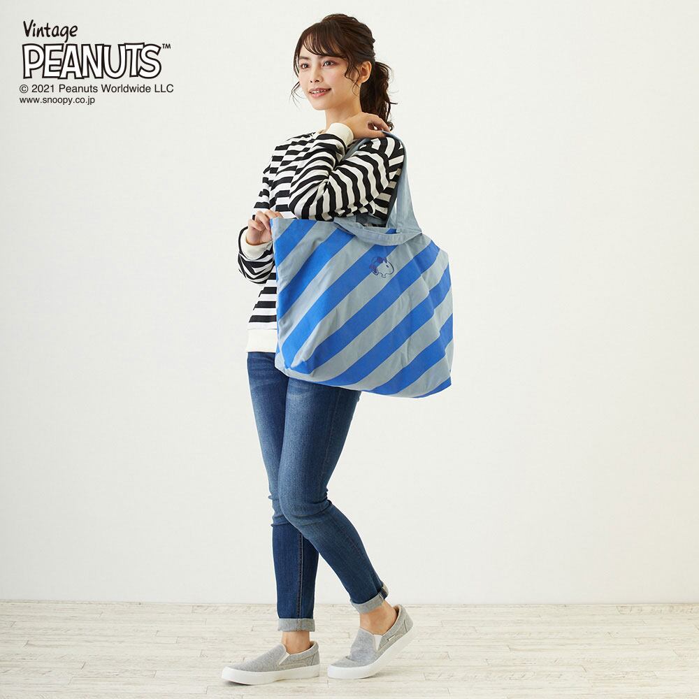 スヌーピーバッグ ROOTOTE ルートート グランデ.Wストライプ ピーナッツ ピンク