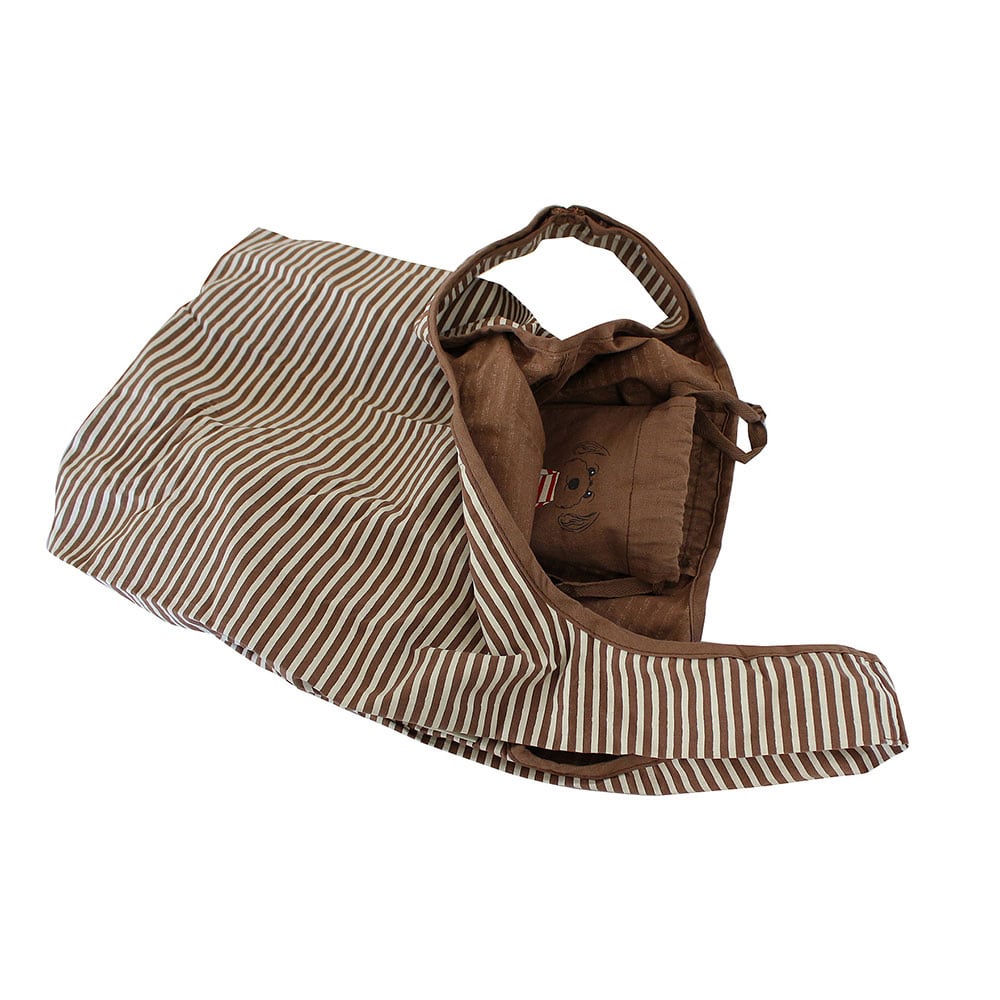 携帯時の巾着ポケットにはちょこんと座ったいぬのイラスト。また、しっぽを振ってご機嫌なうしろ姿もプリントされています。